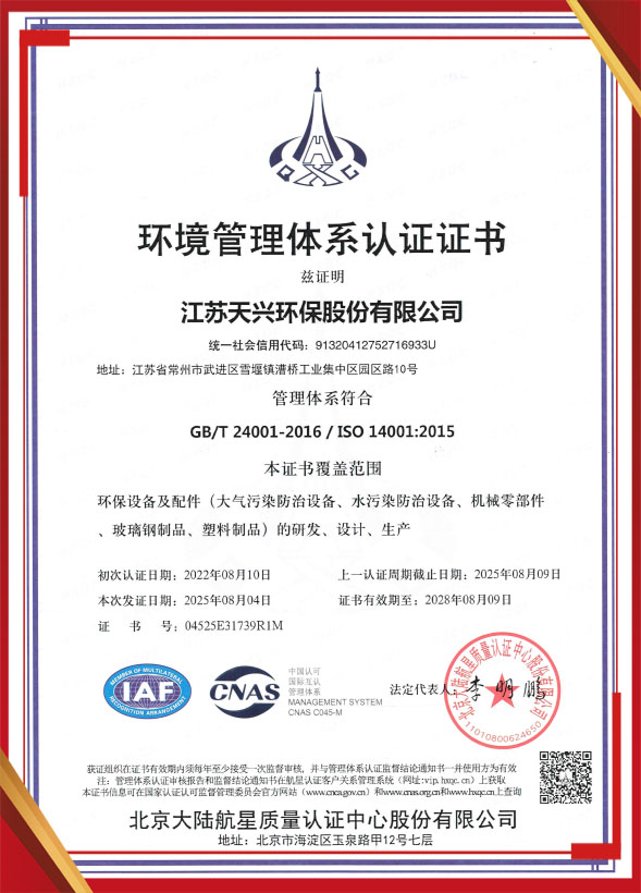 環境管理體系認證證書
